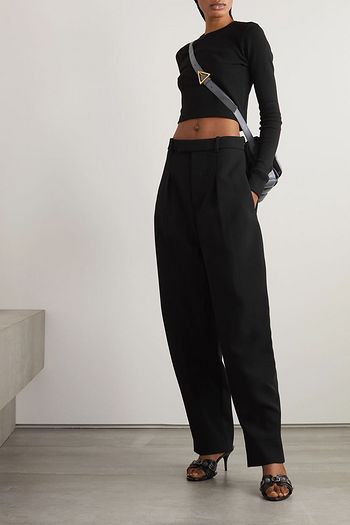 + Hailey Bieber one-shoulder ribbed cotton-blend mini dress
