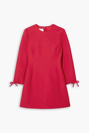 Floral-appliquéd tulle-paneled wool and silk-blend crepe mini dress