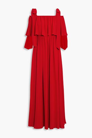 Gilman off-the-shoulder ribbed cashmere and silk-twill midi dress