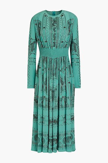 Shirred printed silk-chiffon maxi dress