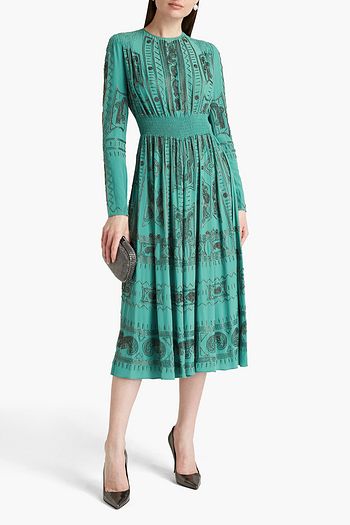 Printed stretch-tulle midi dress