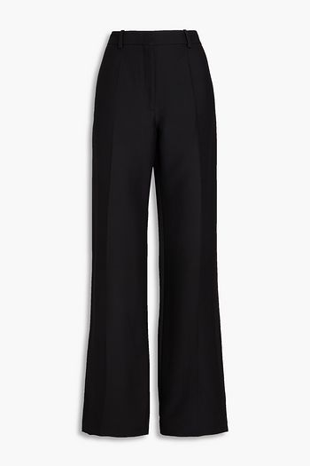 Pleated satin-trimmed wool-crepe straight-leg pants