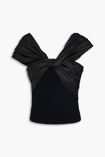 Celiana one-shoulder taffeta-paneled ribbed-knit top