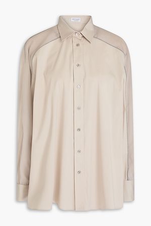 There is something quite satisfying about taking what was a traditional professional menswear suiting staple — the crisp shirt worn under a power suit tailored say, on Savile Row — and subverting it for more than just power moves on Wall Street. I’ve gone to many a cocktail party not in the mood to wear a dress, and I find adding a bold pair of earrings with an oversized shirt buttoned up all the way, collar up, and tucked into a voluminous skirt is as much a statement as a gown. Sharon Stone went even bolder with her crisp white shirt fully unbuttoned, tucked into a satin, lilac skirt for the Oscars in 1998! And I love how Jenna Lyons wears an oversized Oxford shirt these days fully unbuttoned tucked into her jeans, with flashes of skin and jewelry, less preppy and more sensual despite its thick, crisp cotton fabric.