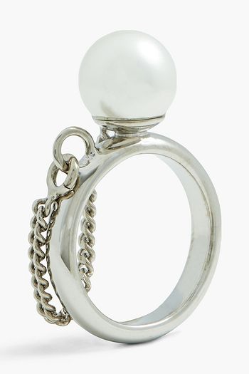 Rockstud gold-tone faux pearl ring