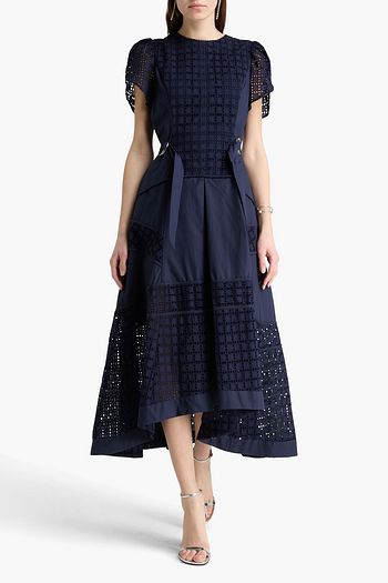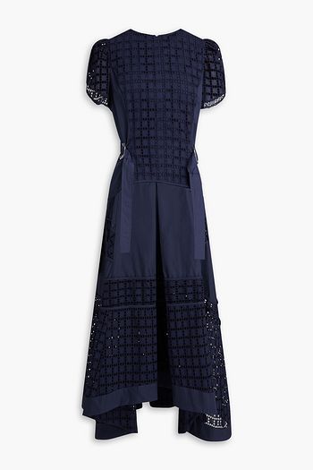 Broderie anglaise cotton and poplin midi dress