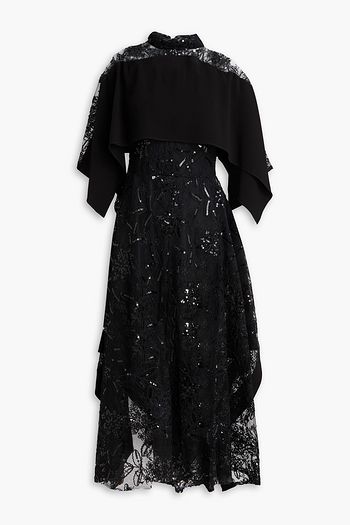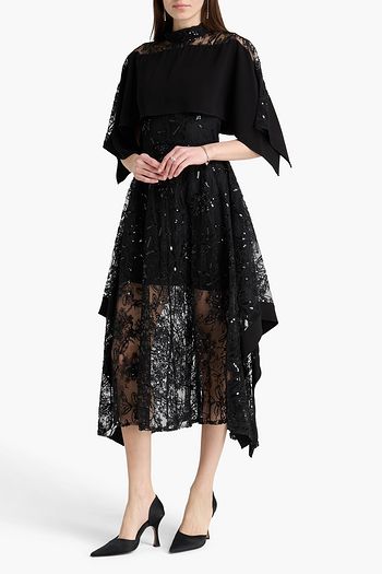 Sequin-embellished lace midi dress