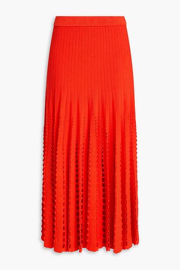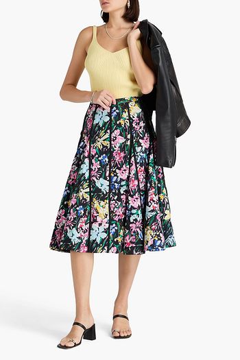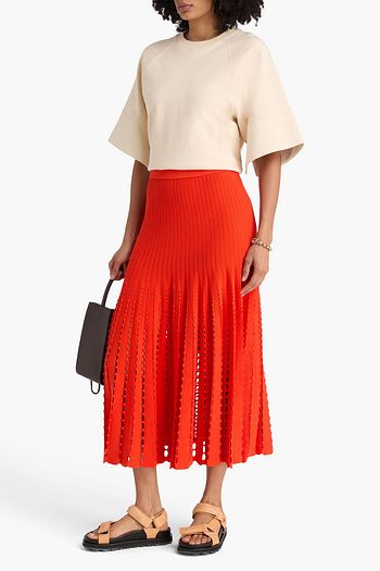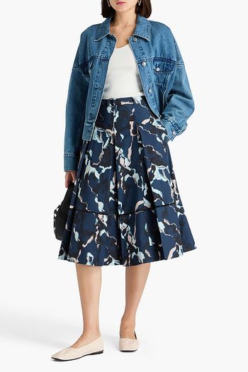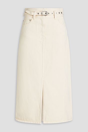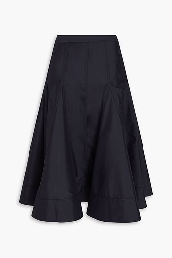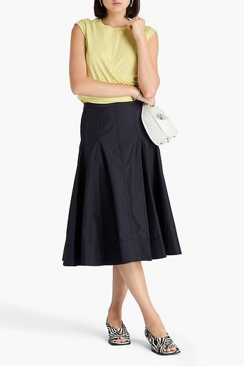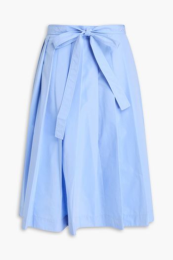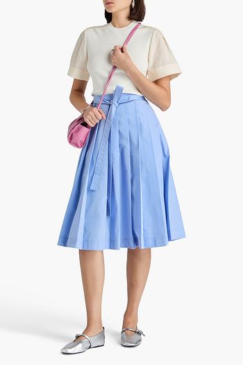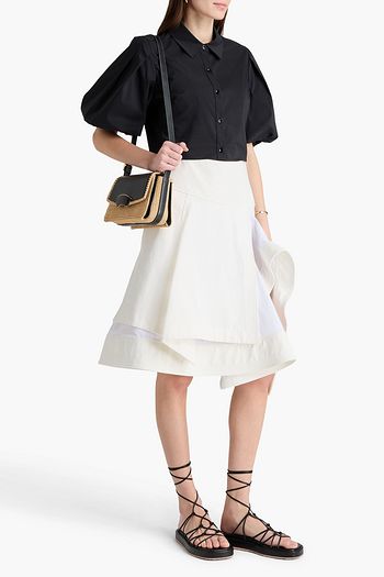 Striped poplin and cotton-blend canvas midi wrap skirt