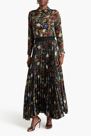 Katz pleated floral-print crepe de chine maxi skirt