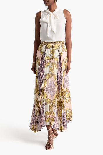 Katz pleated printed chiffon maxi skirt