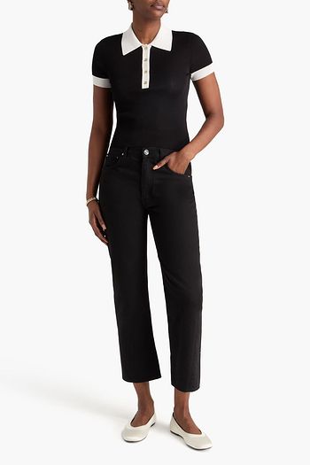 Tawny cropped ruffled broderie anglaise cotton and linen-blend top