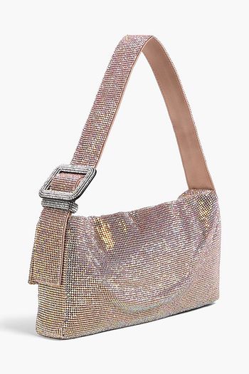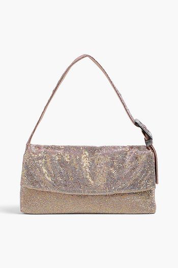 Vitty crystal-embellished metallic silk-satin shoulder bag