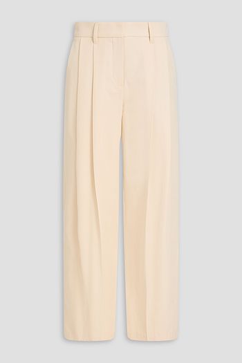 Cropped bead-embellished wool and cotton-blend twill straight-leg pants