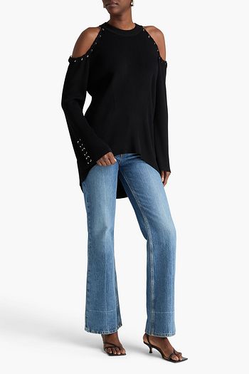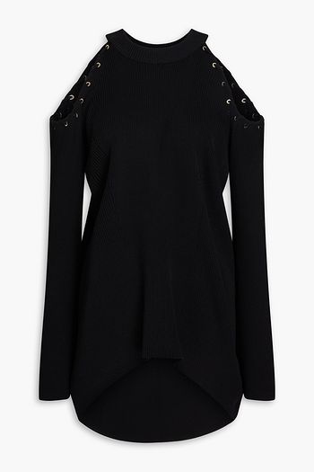 Cold-shoulder ribbed-knit top