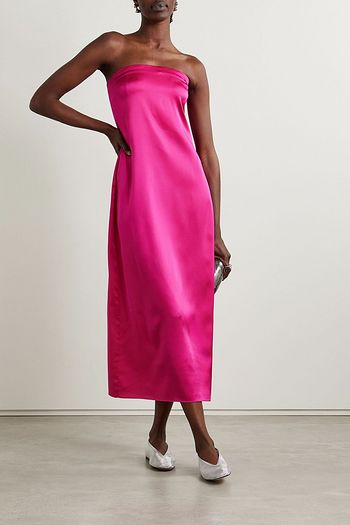 Paulina georgette-trimmed silk-charmeuse midi dress