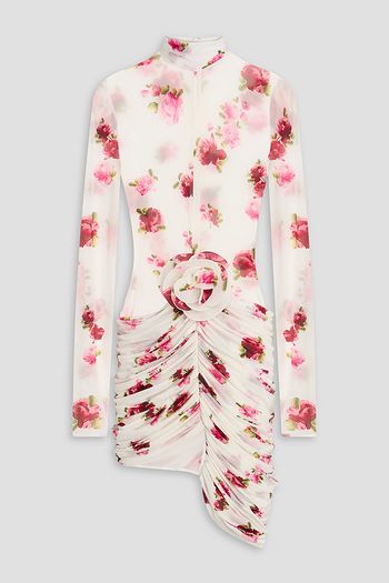 Floral-appliquéd cutout duchesse silk-satin mini dress
