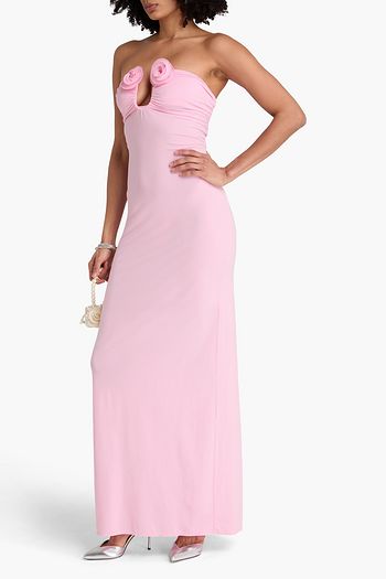 Strapless floral-appliquéd cutout stretch-jersey gown