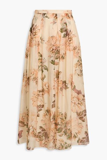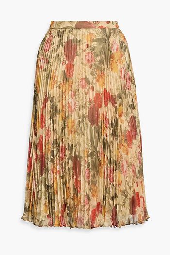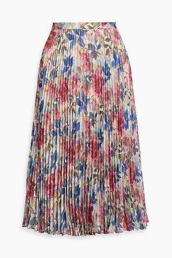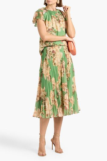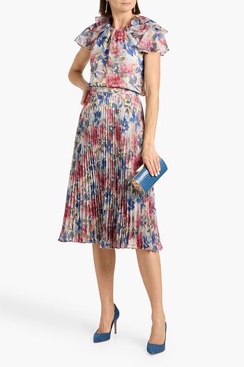 Pleated floral-print chiffon midi skirt