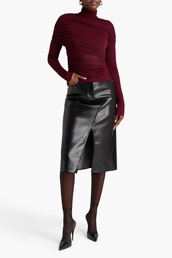 Cutout ruched stretch-tulle midi skirt