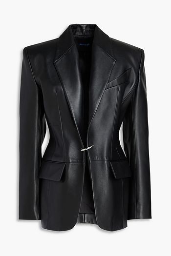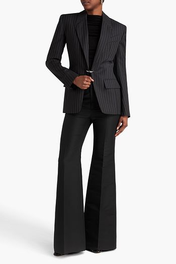 Paneled snake-effect leather flared pants