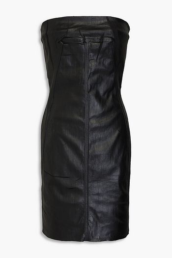 Strapless coated denim mini dress