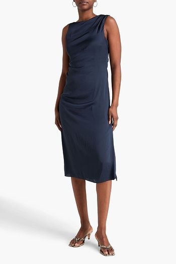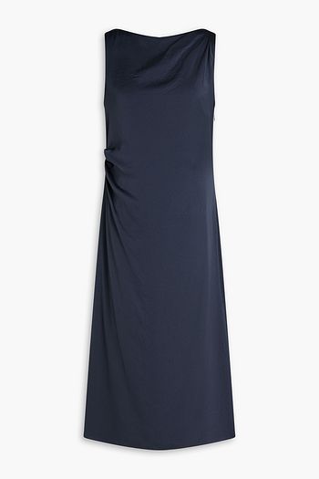 Gathered satin-twill midi dress