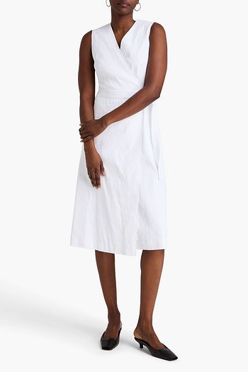 Linen-blend crepe midi dress