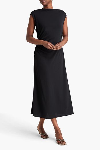 Pleated stretch-knit and satin-crepe midi dress