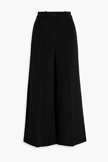 Cropped bow-detailed wool and silk-blend crepe tapered pants
