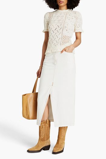 Ruffled crochet-knit top