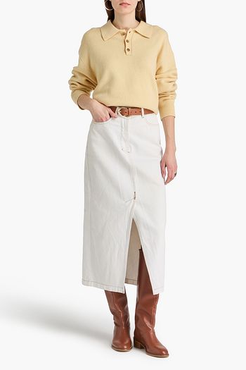 Waffle-knit cotton and cashmere-blend half-zip sweater