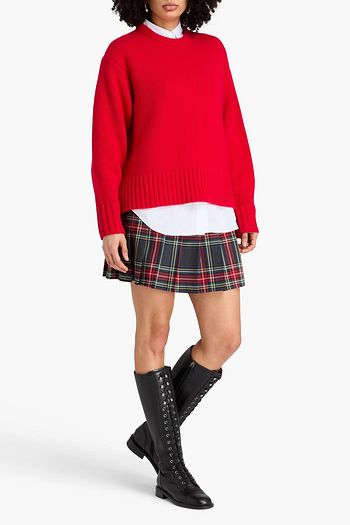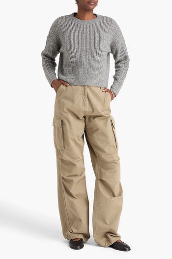 Cropped cable-knit wool and cashmere-blend turtleneck sweater