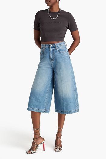 Cropped cable-knit wool and cashmere-blend turtleneck sweater