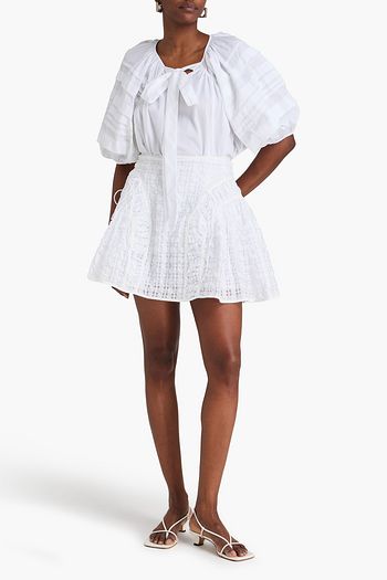 Checked cotton-blend seersucker maxi skirt