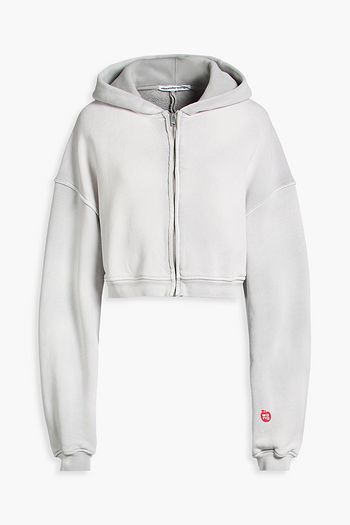 Cropped French cotton-terry zip-up hoodie