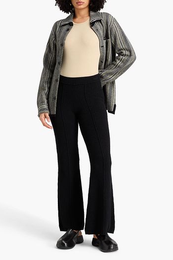 Bouclé-knit cotton-blend flared pants