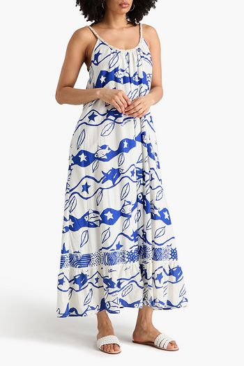 Paisley-print linen and silk-blend maxi skirt