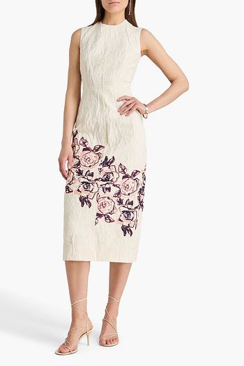 Broderie anglaise-trimmed floral-print linen midi dress