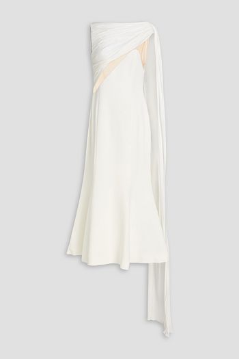 Evana asymmetric draped satin-twill midi dress