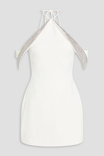 Asymmetric crystal-embellished crepe midi dress