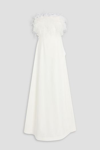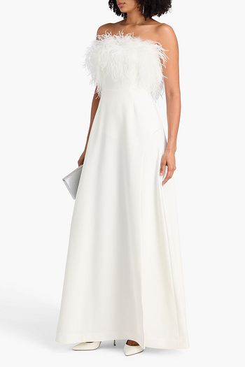 Linc strapless feather-embellished crepe gown