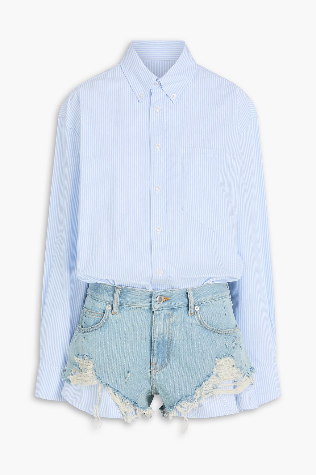 ALEXANDER WANG Striped cotton Oxford and denim playsuit