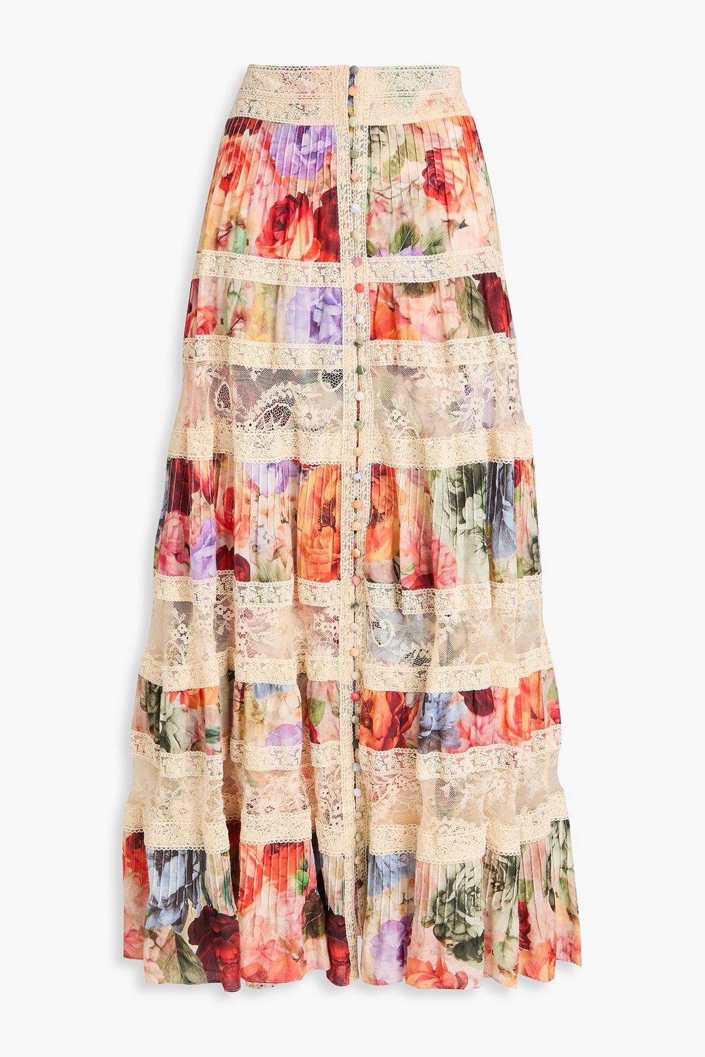 ALICE + OLIVIA Adira floral-print guipure lace-paneled cotton maxi skirt