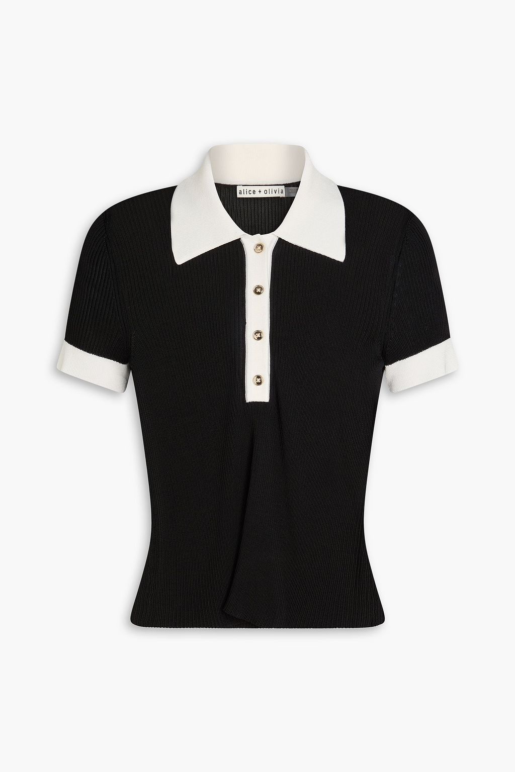 ALICE + OLIVIA Martha two-tone ribbed-knit polo shirt
