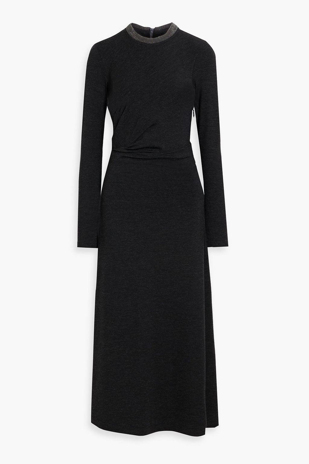 BRUNELLO CUCINELLI Bead-embellished draped wool-blend jersey midi dress