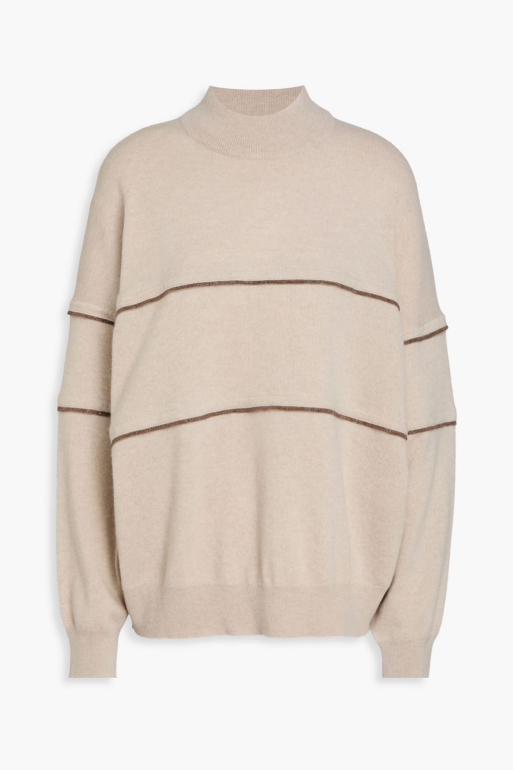 BRUNELLO CUCINELLI Bead-embellished cashmere turtleneck sweater