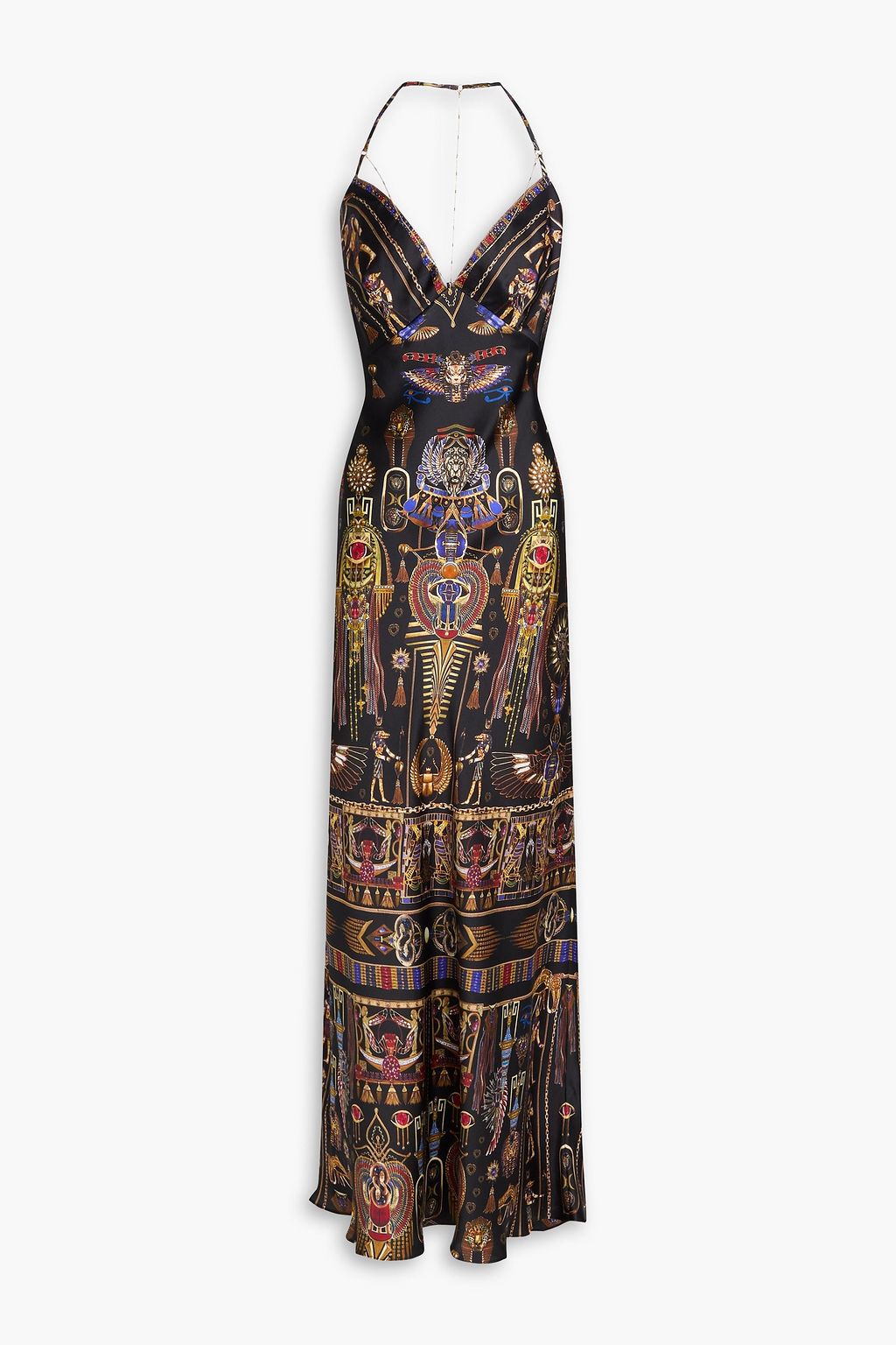 CAMILLA Embellished printed silk-satin halterneck maxi dress