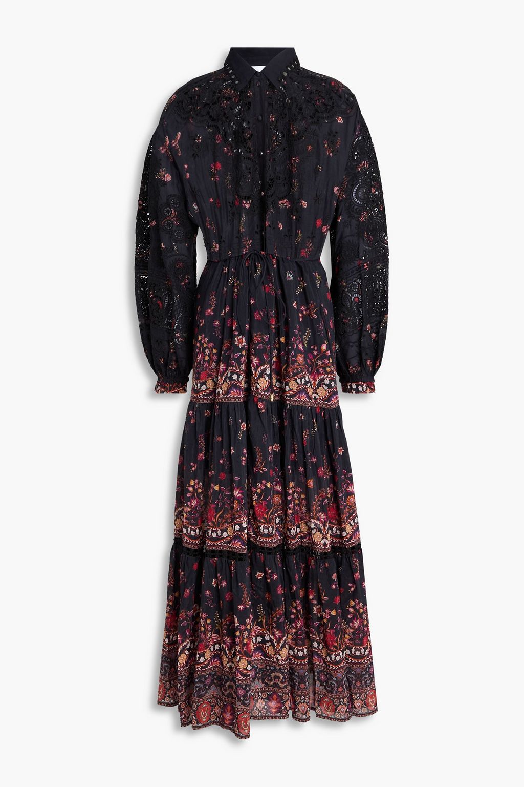 CAMILLA Floral-print embroidered cotton and silk-blend voile midi shirt dress