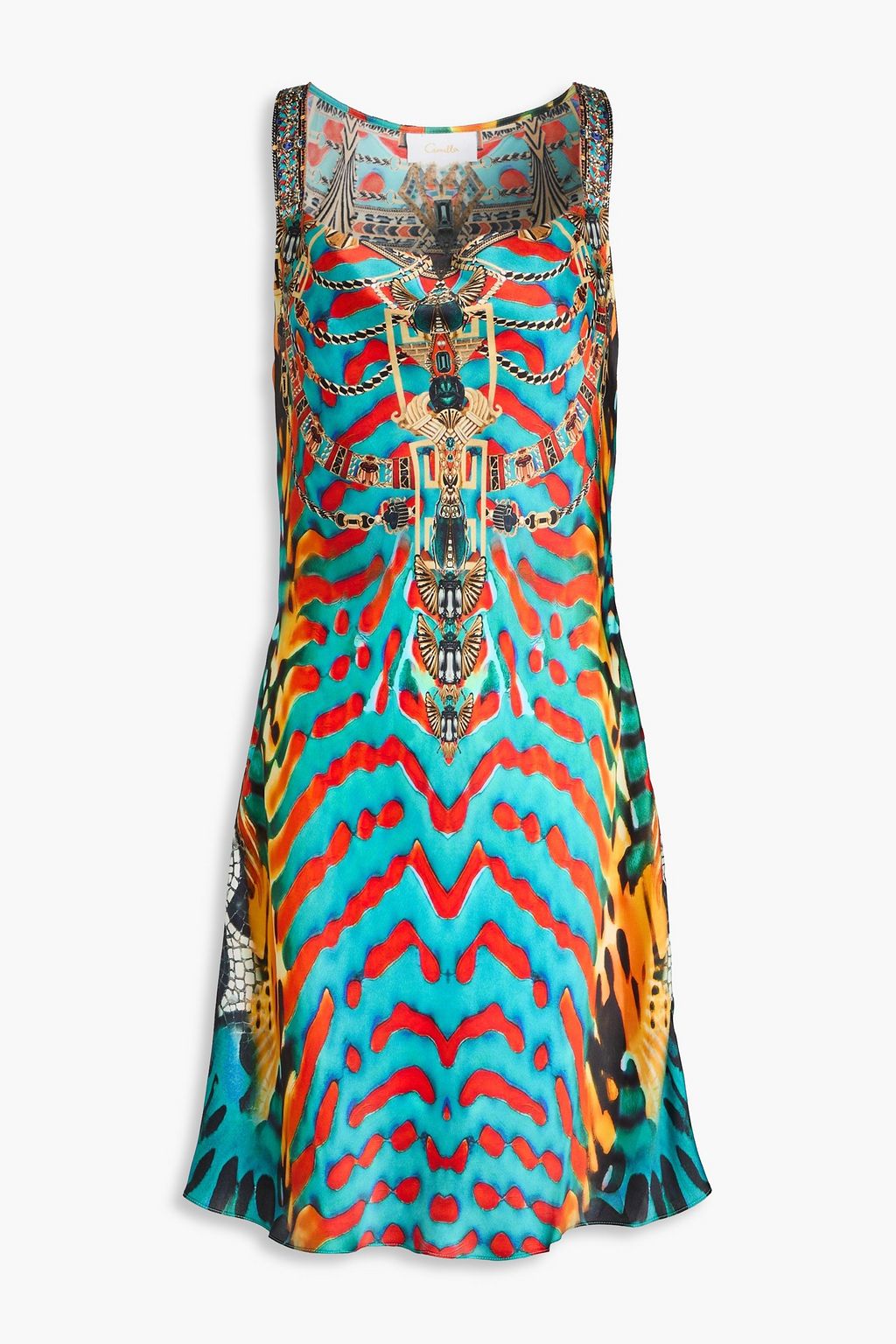 CAMILLA Printed embellished silk-satin mini dress