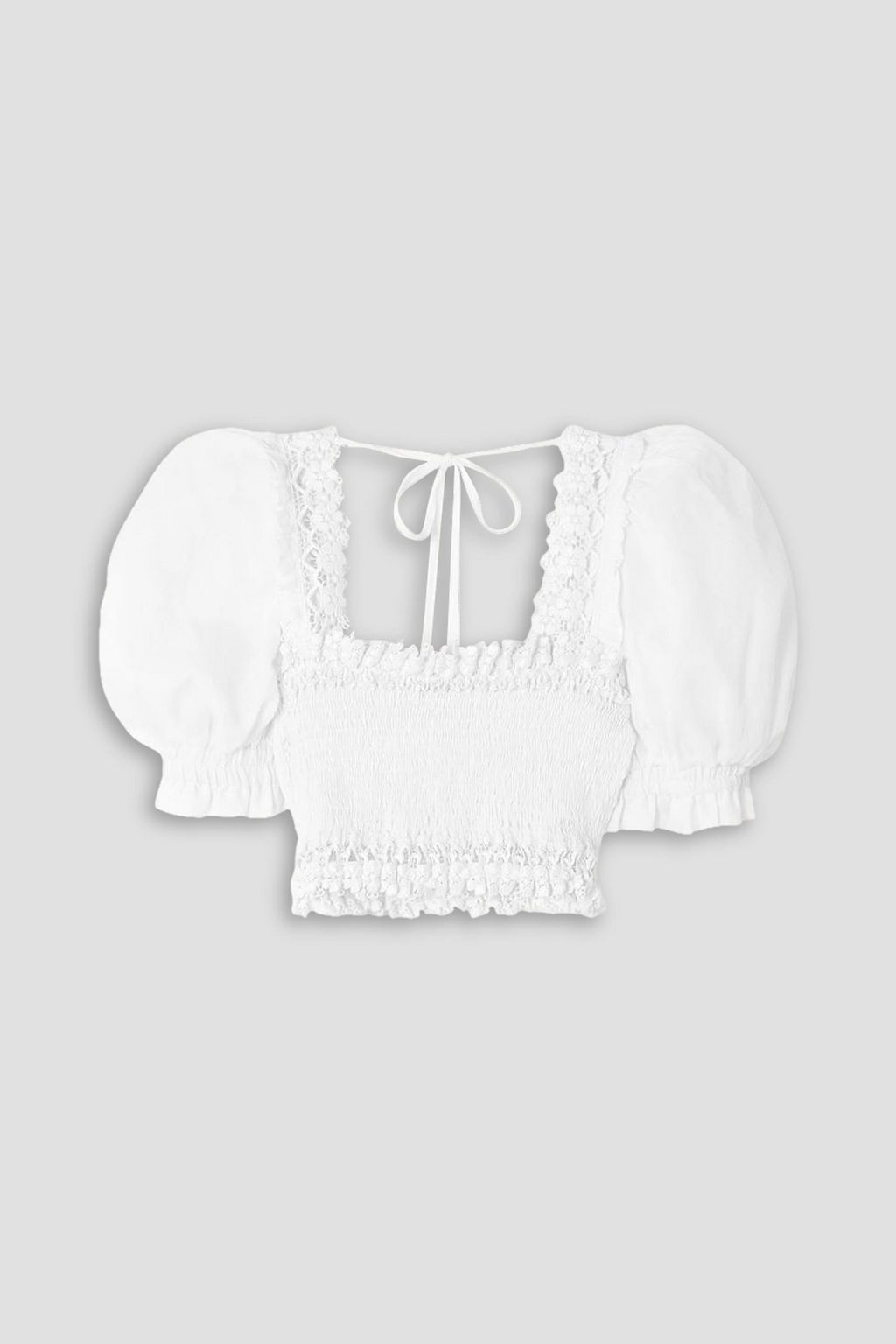 CHARO RUIZ IBIZA Judy cropped crochet-trimmed shirred cotton-blend voile top